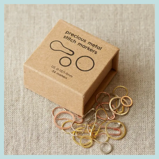 - - 6 each gold, silver, copper opening stitch markers - US 11 / 8 mm needles or smaller